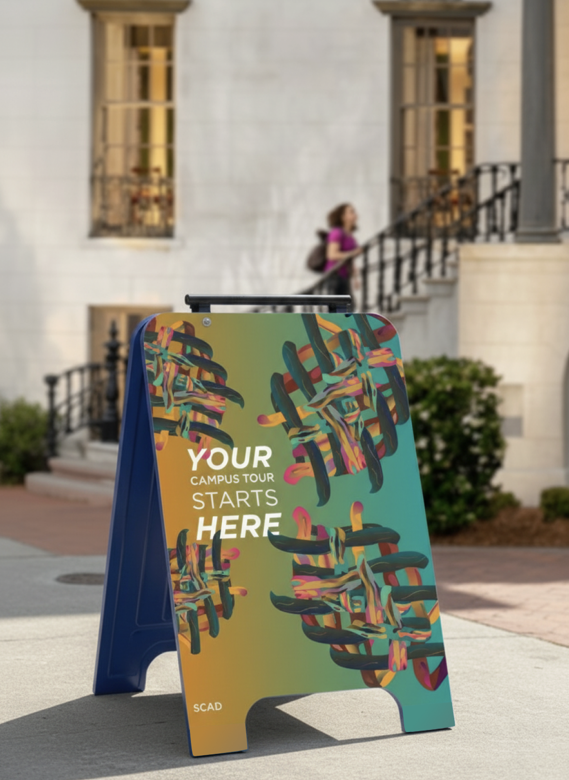 Interactive campus tour experience — prop design and environmental graphics for SCAD.