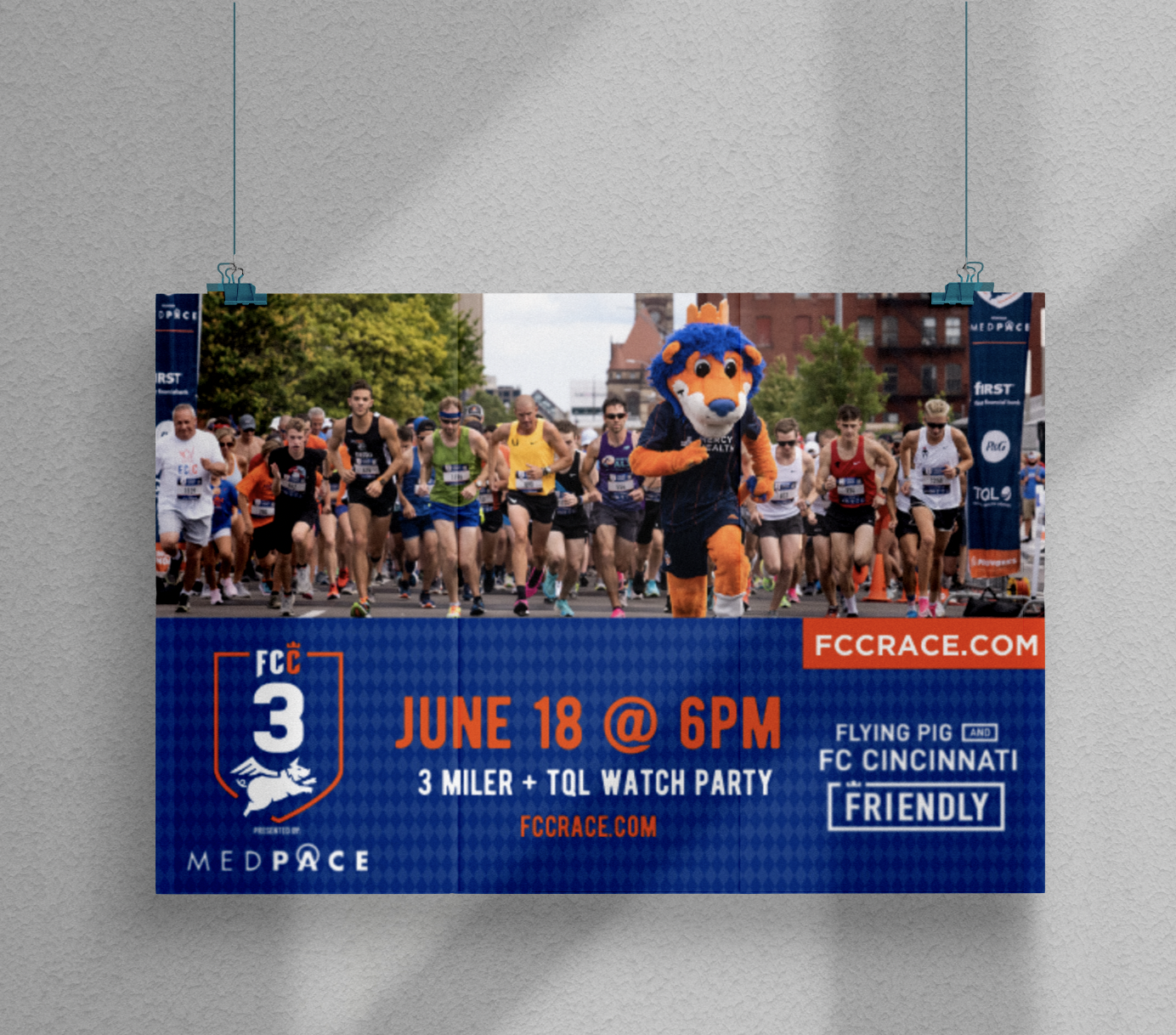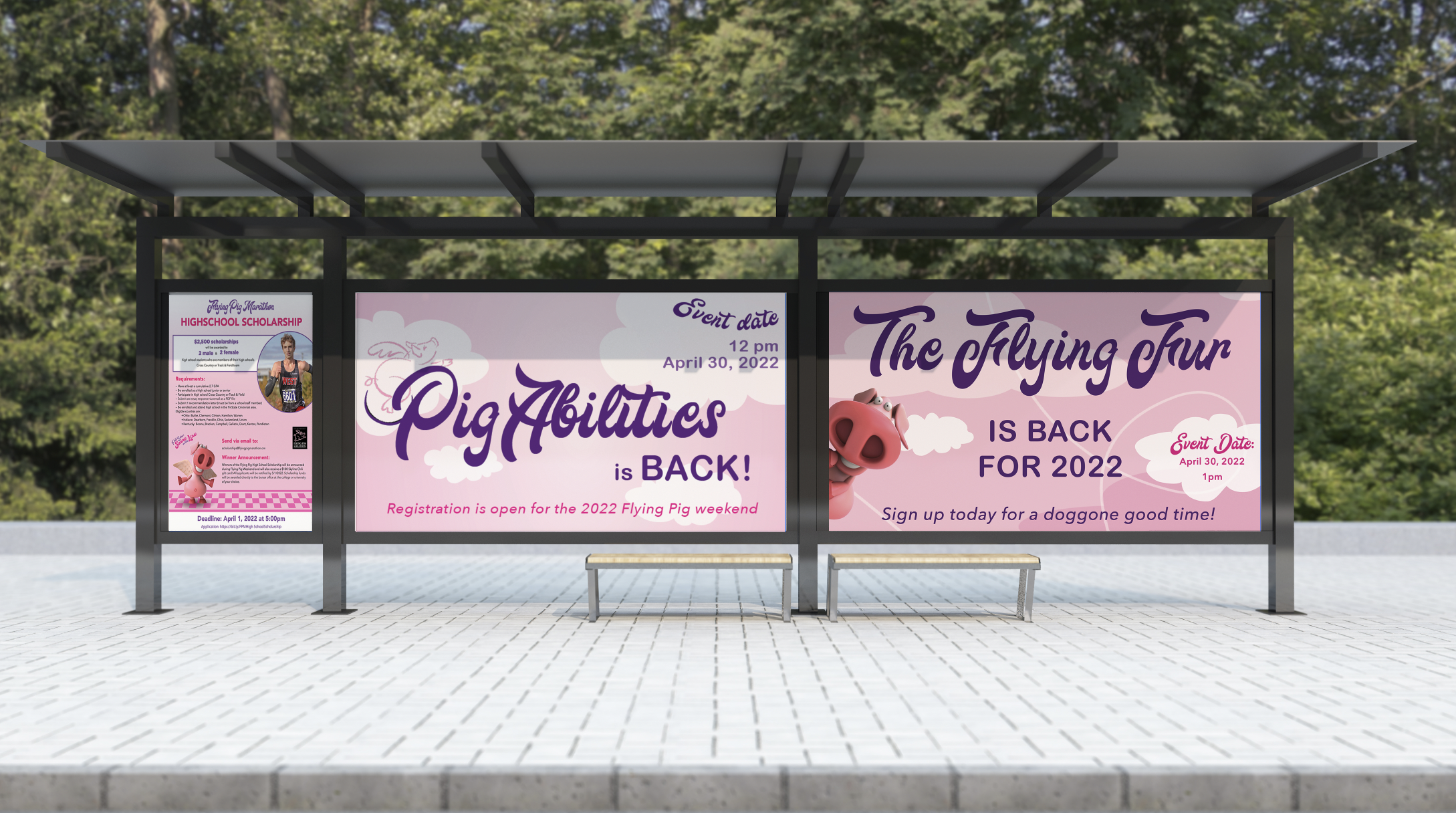 Poster series for the Flying Pig Marathon — expressive, high-energy race day graphics.