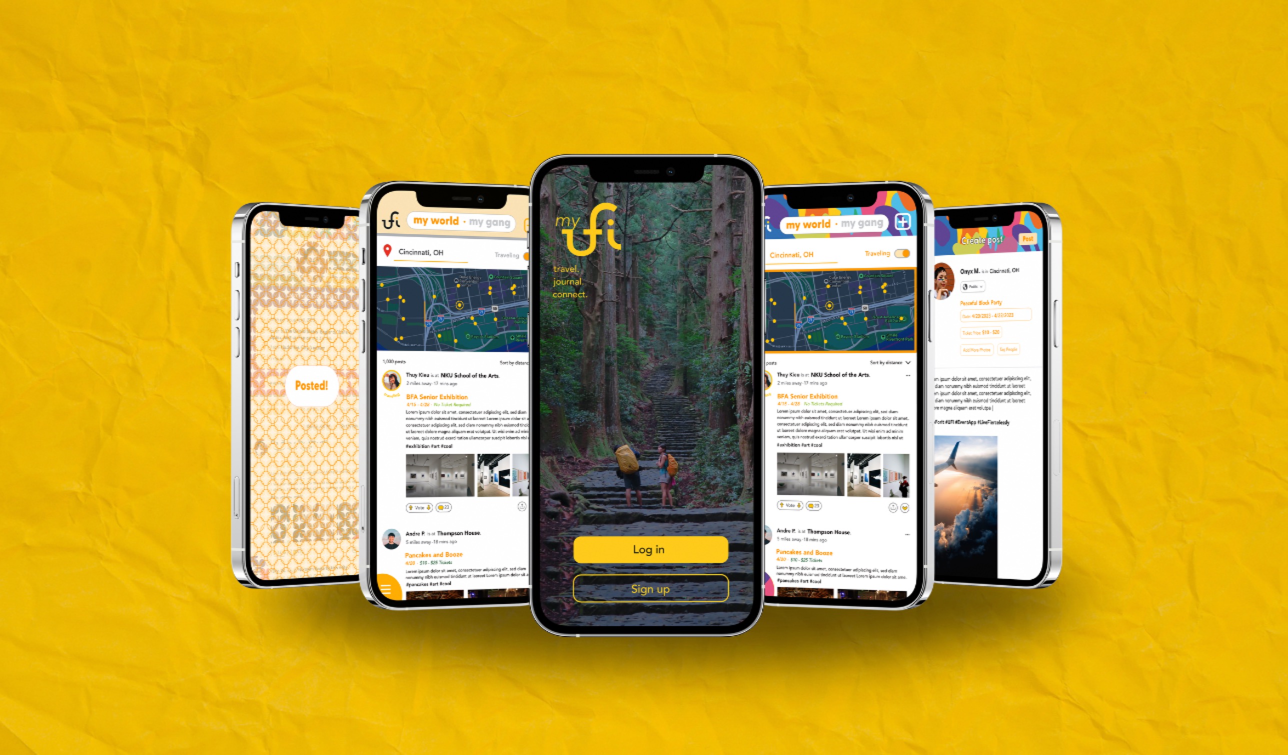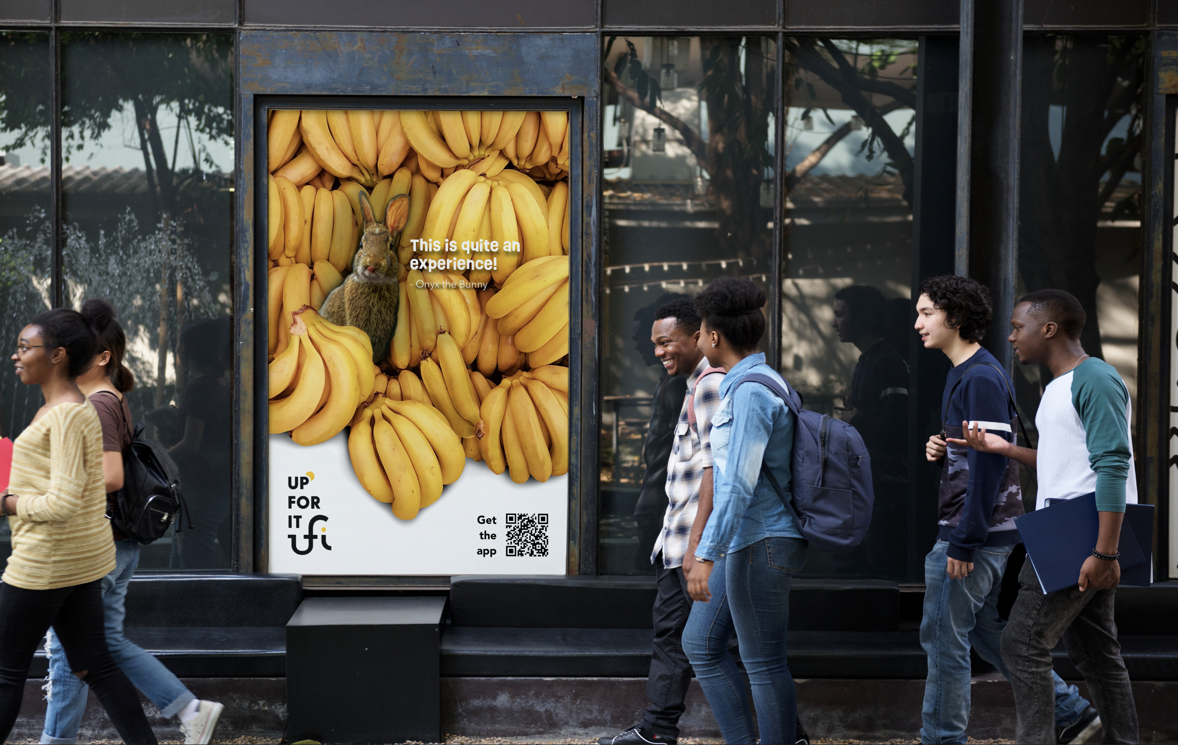 App design, poster, and welcome box — a full brand experience for Up For It.